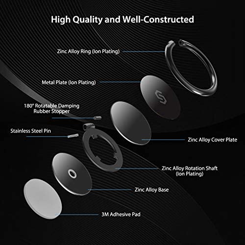 [360°Rotatable & 180°adjustable] Syncwire phone holder is 360° rotatable and 180° foldable so that you can position your phone at your best viewing angle anytime. This ring grip is tested to withstand 6000 times of folding without getting loose. The metal plate is a perfect match for a magnetic car mount.