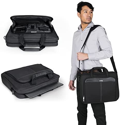 Targus Laptop Bag — Black 15.6″ Classic Slim Briefcase Messenger Bag, Spacious, Ergonomic, Foam Padded Laptop Case for Devices Up To 16″ (TCT027US)