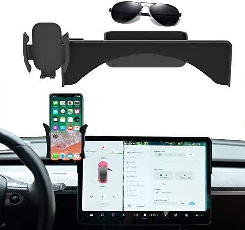 TAUTO for Tesla Model Y Model 3 Phone Holder Cell Phone Mount Silence Screen Phone Cradle Kits Compatible with 5.5-7.0″ Smartphones Accessories with Silicone Sunglasses Organizer