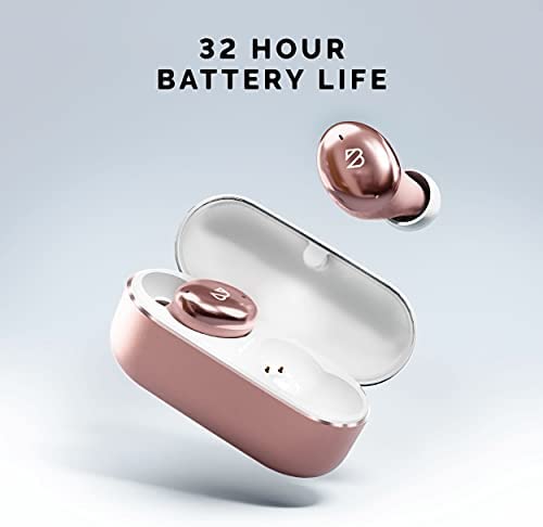 Tempo 30 Rose Gold Wireless Earbuds for Small Ears Women, Cute Pink Bluetooth Bass Boost Earphones Small Ear Canals, IPX7 Sweatproof, 32-Hour Long Battery, Loud in Ear Headphones Gift for Women