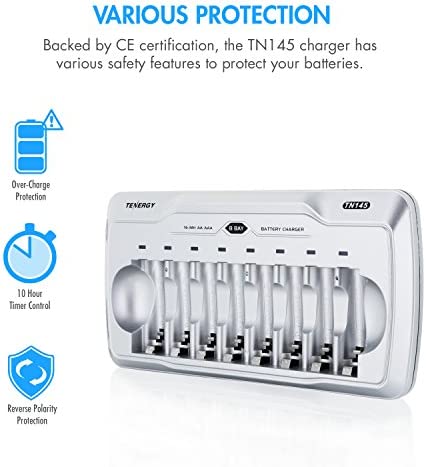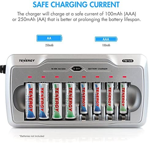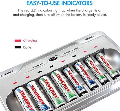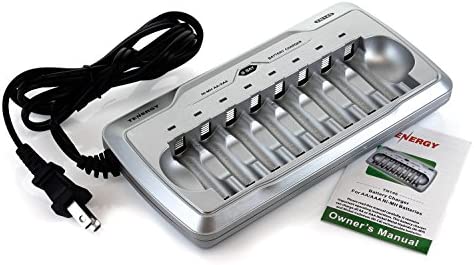 Tenergy TN145 AA AAA Battery Charger, 8-Slot Household Battery Charger, AA Cell Battery Charger with Individual Bays and LED Indicators, for NiMH/NiCd Rechargeable Batteries