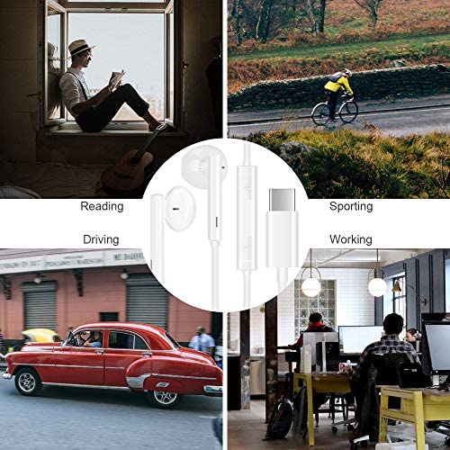 USB Type C Earphones Stereo in Ear Earbuds Headphones: Thanks to ergonomic design with ear canal and skin-friendly material, comfortably to fit in ear, not easily fall out when running.