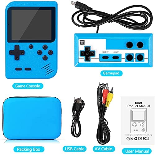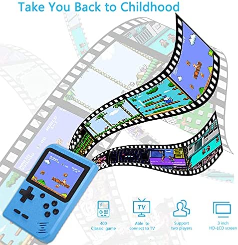 Tlsdosp Retro Handheld Game Console with 400 Classical FC Games-3.0 Inches Screen Portable Video Game Consoles with Protective Shell-Handheld Video Games Support for Connecting TV & Two Players (Blue)