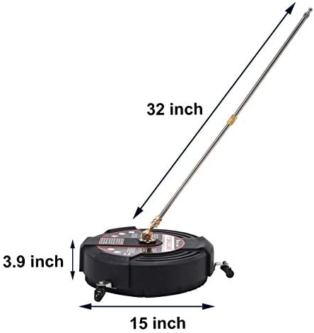 Application: The 15″ surface cleaner is much more efficient than normal pressure washer spraying nozzle. Perfect for cleaning large area like driveways, patios, rooftops, walls and sidewalks.