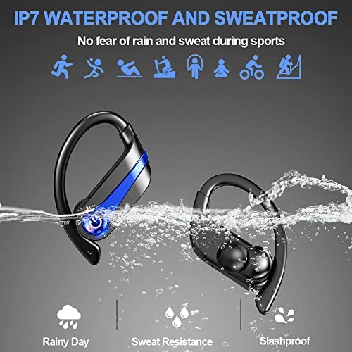 Tsauuc Wireless Earbud, Bluetooth 5.1 Headphones Sport Earbud in Ear 50H Deep Bass Noise Cancelling Earphones with Mic, IP7 Waterproof Earhooks Headset USB-C/LCD Display for Running