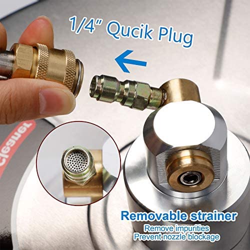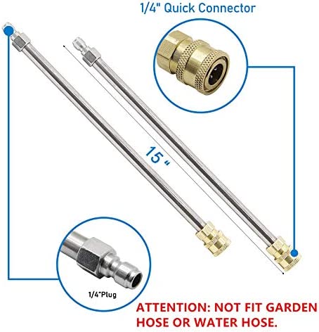 Notes: NOT FIT GARDEN HOSE OR WATER HOSE. The wand is 1/4″ thread quick connect plug , if it is not suitable for the connector of your PRESSURE WASHER GUN, please purchase the adapter coupler connection separately.