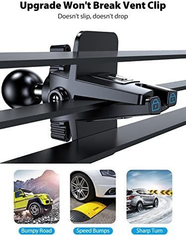 [Most Stable Air Vent Car Mount for Phone] This air vent clip, has a sturdy structure with built-in metal, the vent clip of this car phone holder mount won’t break. The safest lock system of this Magsafe car mount will lock itself on the air vent 100% securely, never fall off. The soft silicone on the air vent clip provides stronger holding power and protects your air vent blade from scratching or deforming. In addition, the wide opening of the car phone mount fits most car air vents