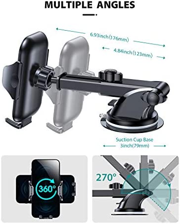 Long Arm Design & Multiple Viewing Angle: The car mount for iPhone 11 has a telescopic arm that extends from 4.84″ – 9.05″ and can pivot up or down for a variety of angles which optimizes viewing capabilities. This car holder for cell phone has a highly flexible ball-joint 360° rotation that provides infinite viewing angles. Position your phone at the perfect angle to enjoy a more relaxed and safer drive.