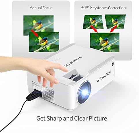 WiFi Mini Projector, WEWATCH 8500 Lumens Movie Projector, 1080P and 260″ Display Supported, Portable Video Projector for Outdoor Use Compatible with TV Stick, HDMI, iOS Android Phone – Silver