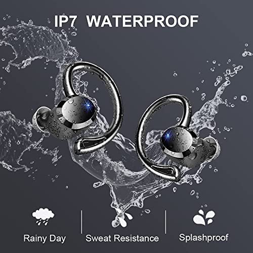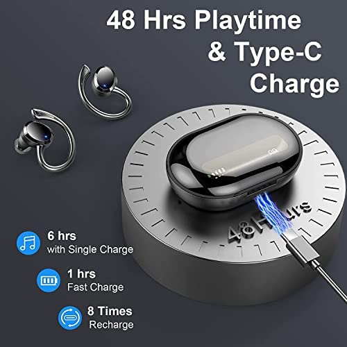 Wireless Earbud, Sport Bluetooth 5.1 Headphones with Earhooks Wireless Earphones in-Ear with Immersive Sound, Bluetooth Earbud IP7 Waterproof, Noise Cancelling, Dual LED Display, 48H Playtime, Running