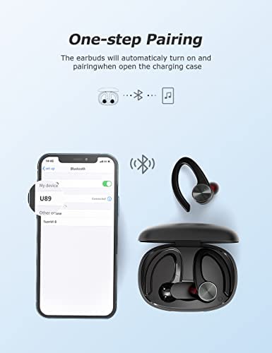 Bluetooth V 5.2 Technology & One-Step Automatic Connection: Advanced Bluetooth 5.2 technology has faster transmission speed, stronger connection stability. When pairing for the first time, open the case and remove the bluetooth earbuds, then select “U89” in your phone’s bluetooth list, and the sports earbuds will connect and use it. Bluetooth range up to 33 feet. The wireless headphones will automatically power up and pair with your device after the first connection