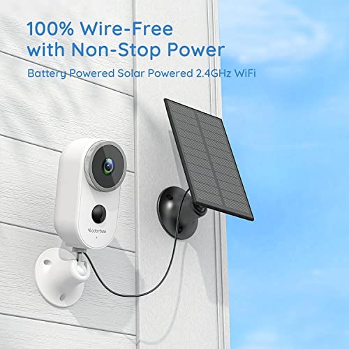 【100% Wire Free & Non-stop Solar Powered】 Built-in rechargeable battery and 2.4G HZ wireless WiFi antenna, no any trouble of wiring and extra installation cost, easy to place anywhere for apartment, front door, garage surveillance. The solar panel provides 365 days non-stop power, eliminating the inconvenience and trouble of frequently climbing ladders.