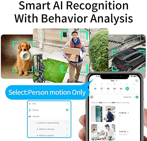 【Instant Alerts &Siren & Flashlight】 Home security camera. When a stranger outside your home in the camera. You would receive message in seconds with a photo preview right in the notification without opening the the App, You could see who comes and goes. Siren and flash spotlight could be set to automatic or mannual turn on. The extra service are that this camera could analys motion behavior,distinguish people,pet,car,and also you could edit motion zone( extra subscription service)