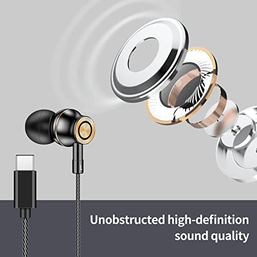 Wollony USB C Headphone for Samsung S22 Ultra S21 FE, Magnetic in-Ear Earphones with Microphone Noise Isolating Earbud Type C Wired Headset for Samsung Z Flip 3 S21 S22 iPad Mini Air OnePlus 10 Pro
