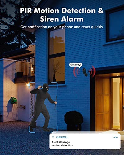 [Scare Away Intruders in 1 Second] This outdoor security camera wakes up rapidly when motion is detected and send instant alerts. Smart PIR motion detection and can be set to detect human only. Less false alerts, higher accuracy. Updated alarm function can be activated automatically or manually to scare away intruders in 1 second! Stop the crime before it happens.